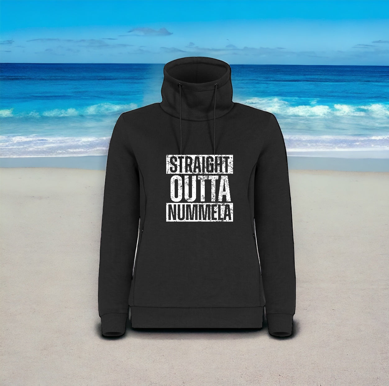 Korkeakauluksinen collegepaita pehmeästä kankaasta. 2 vetoketjullista piilotaskua. Kiristysnyöri ja helposti irrotettava niskalappu, joten se voidaan tarvittaessa vaihtaa.
